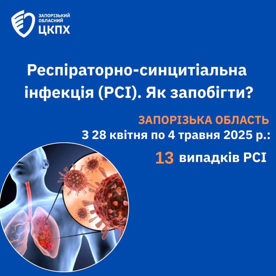 За період з 28 квітня по 4 травня вірусологічною лабораторією Запорізького ОЦКПХ підтверджено 13 випадків респіраторно-синцитіальної інфекції (РСІ).