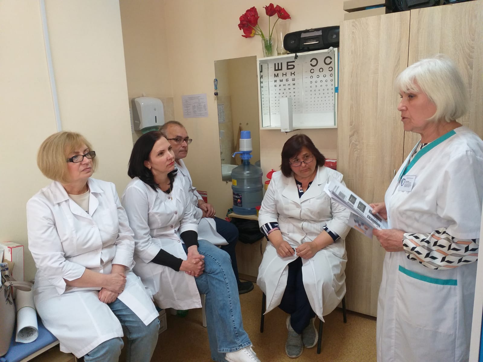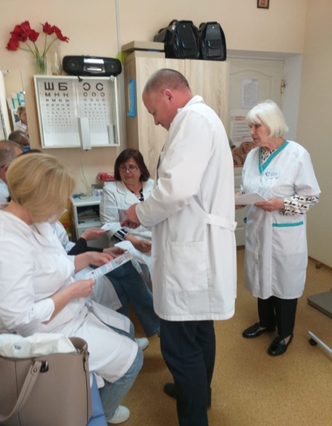 25 квітня відбулася робоча зустріч з медиками Центру первинної медичної допомоги № 9. Фахівчині відділу епідеміологічного нагляду та профілактики неінфекційних захворювань Наталія Кирилова та Ірина Кирпа поспілкувалися з медичним директором ЦПМСД, завідувачами та сімейними лікарями амбулаторій № 3, 4, 5. У зустрічах взяли участь 24 медичних фахівця.
