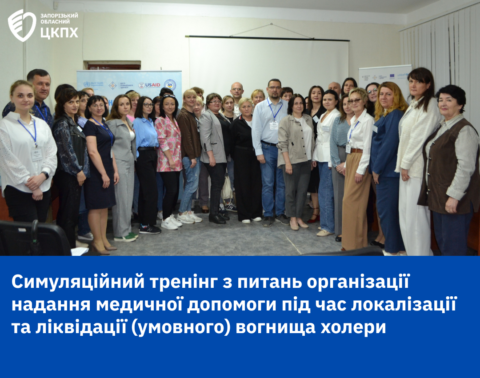 28 травня на базі тренінгового центру Запорізького ОЦКПХ відбулася робота симуляційного тренінгу з питань організації надання медичної допомоги під час локалізації та ліквідації (умовного) вогнища холери.