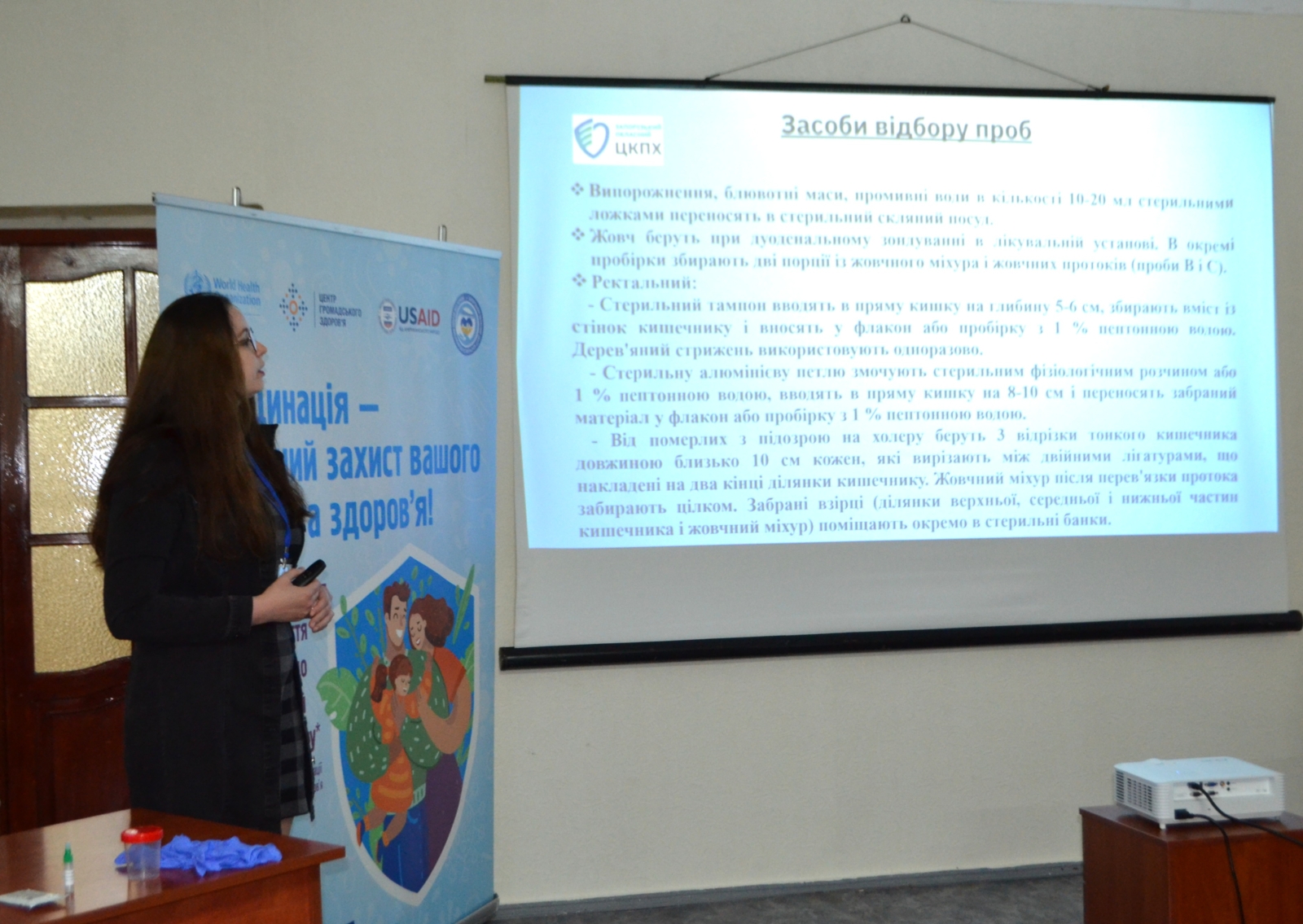 «Правила відбору та доставки матеріалу для дослідження на холеру. Практична вправа», «Алгоритм використання швидких тестів на холеру. Практична вправа», Віталіна Жученко, лікарка-бактеріолог лабораторії особливо небезпечних інфекції ДУ «Запорізький ОЦКПХ МОЗ»;