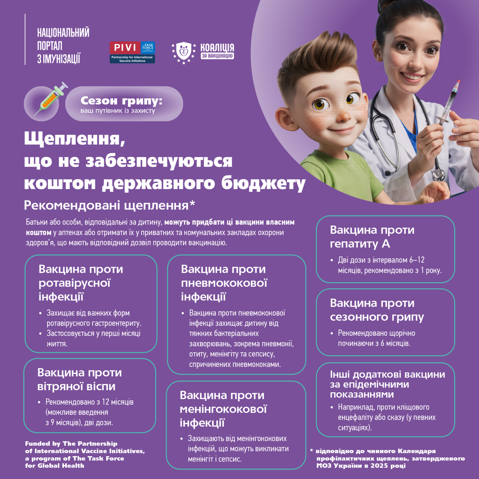 З переліком щеплень, що не забезпечуються коштом державного бюджету України, можна ознайомитися тут: