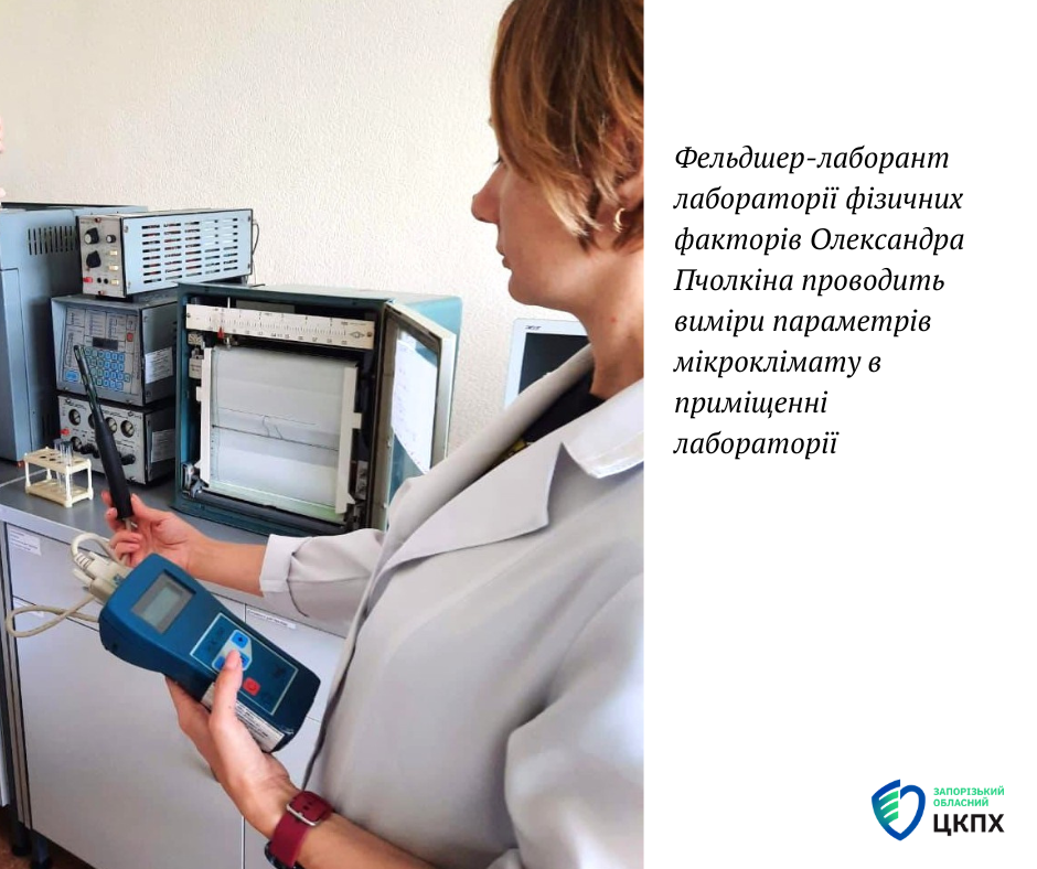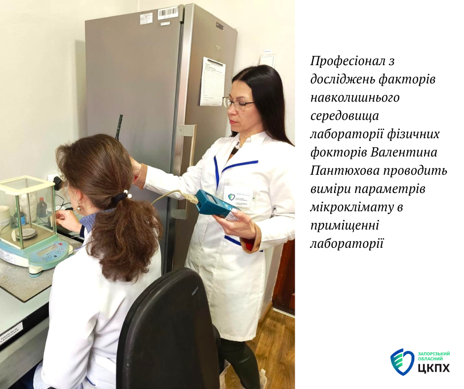 Досвідчені фахівці лабораторії фізичних факторів Запорізького ОЦКПХ проводять інструментальні дослідження параметрів мікроклімату, а також роз’яснення впливу фізичних факторів на стан здоров’я людини.