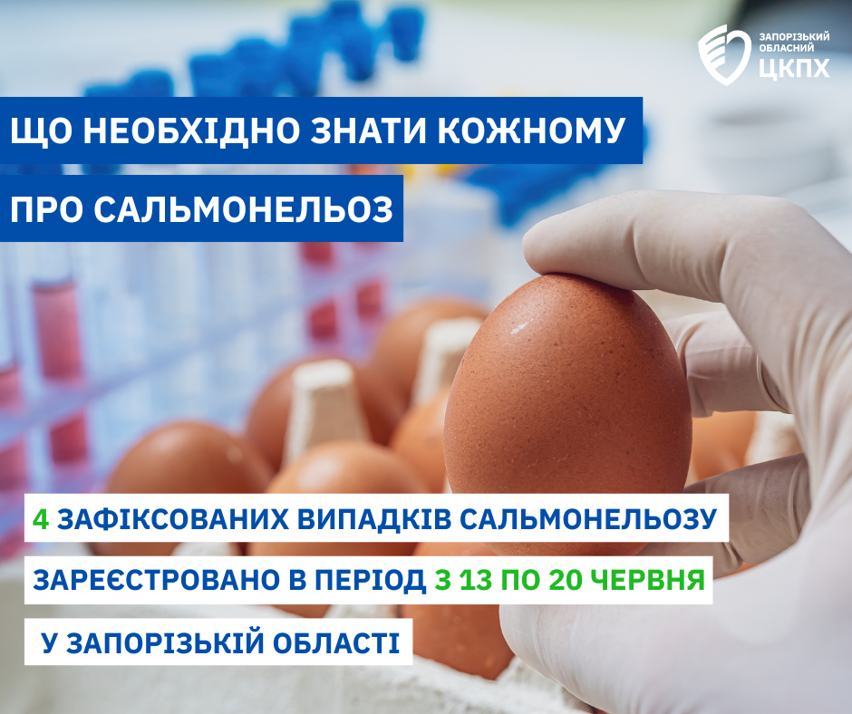 У Запоріжжі з 13 по 20 червня зафіксували 4 випадки сальмонельозу серед дорослих.