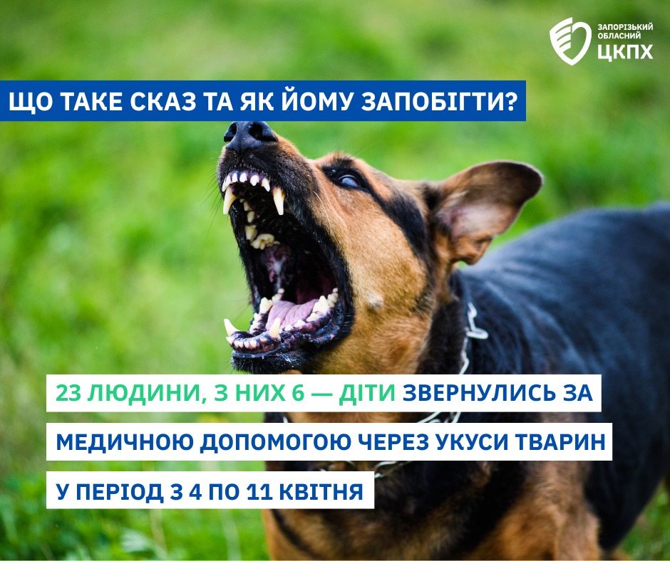 За минулий тиждень з 4 по 11 квітня у Запоріжжі та області через укуси тварин за медичною допомогою звернулись 23 людини, з них 6 — діти. Всього за три місяця 368 осіб звернулися за антирабічною допомогою у заклади охорони здоров’я Запорізької області через укус чи ослинення.