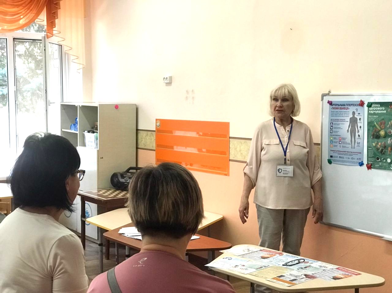 Лікарка Наталія Кирилова нагадала всім присутнім на інформаційній зустрічі про основні складові здоров’я: фізична активність, здорове харчування, відмова від шкідливих залежностей – тютюну та алкоголю, достатній сон, ментальне здоров’я. Прості, на перший погляд, речі, але як часто ми про них забуваємо і нехтуємо доволі нескладними рецептами для свого здоров’я та довголіття. Окремо лікарка акцентувалася на раціональному харчуванні, розповіла про тарілку здорового харчування, чому варто обмежити споживання цукру та солі, говорила про необхідність питного режиму.
