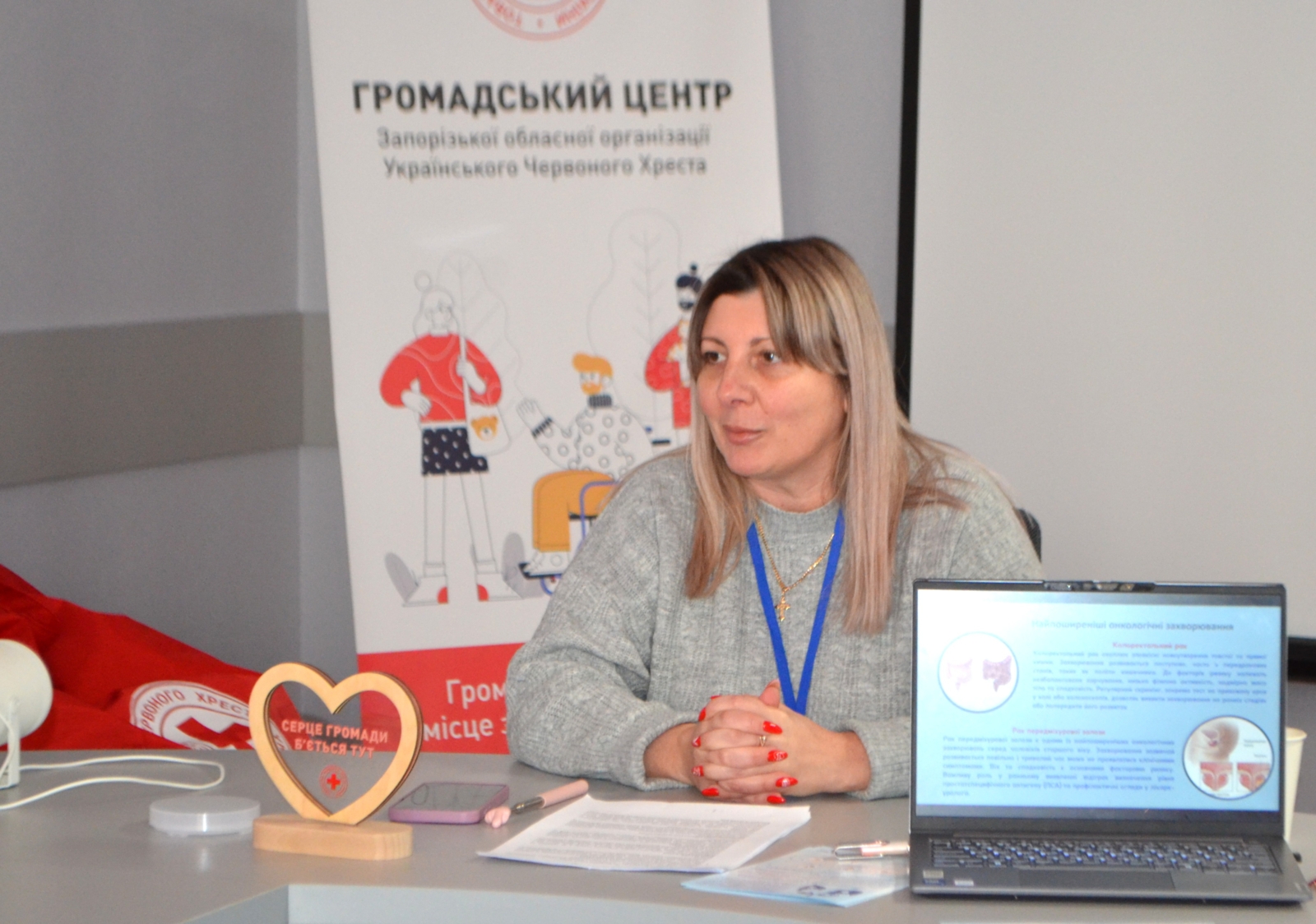Лікарка Ірина Бакуліна під час презентації пояснила, з яких причин можуть розвиватися онкозахворювання, розповіла про найпоширеніші види раку, розвінчала деякі міфи про захворювання, детальніше акцентувалася на ранній діагностиці та профілактиці.