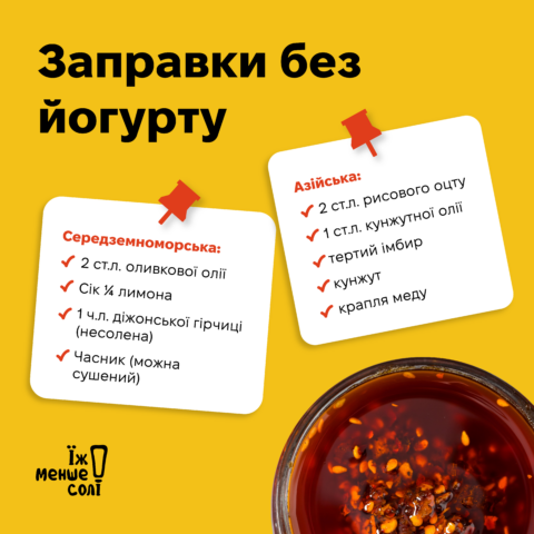 Разом з нутріциологинею, консультантки зі здорового харчування Дар’єю Трохимович підготували ідеї для заміни солі і звичних “солоних” заправок.