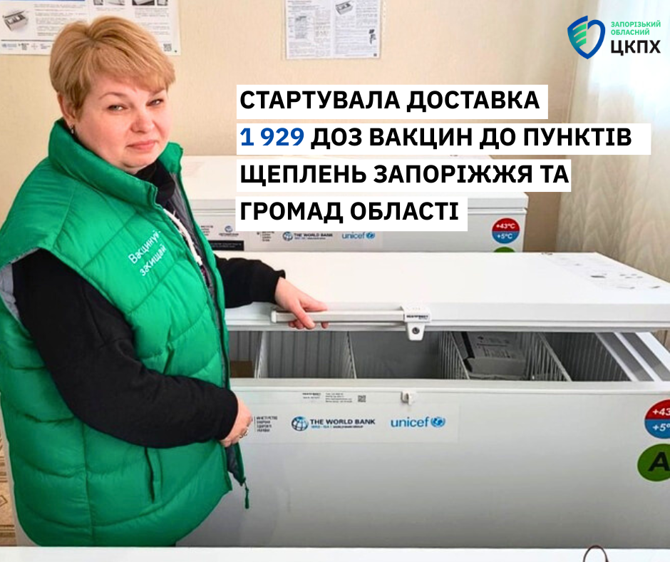 Упродовж двох днів – 6 лютого та 9 лютого 2026 року Запорізький ОЦКПХ здійснює доставку 1 929 доз імунобіологічних препаратів до 28 закладів охорони здоров’я Запорізької області згідно потреби та місячного розподілу: