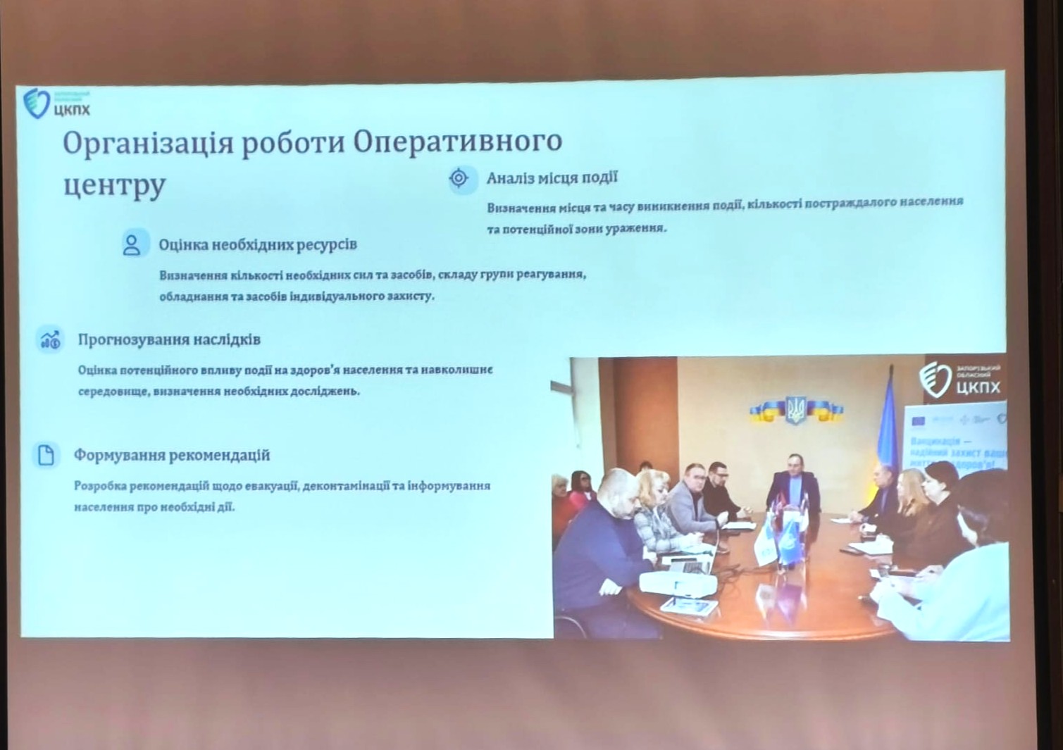 12 травня 2025Сьогодні на базі Запорізького обласного ЦКПХ відділом готовності та реагування на надзвичайні ситуації було проведено інструктивно-методичне заняття для завідувачів відокремлених структурних підрозділів, завідувачів санітарно-гігієнічної лабораторії та лабораторії фізичних факторів, спеціалістів груп оперативного реагування на тему: «Реалізація рекомендацій Центру громадського здоров’я щодо реагування на хімічні та радіаційні загрози».