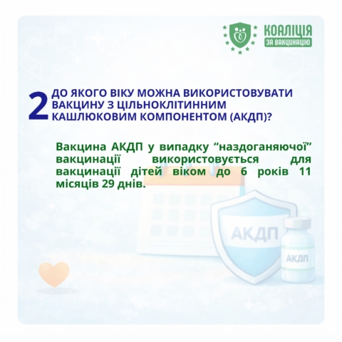 Питання: До якого віку можна використовувати вакцину з цільноклітинним кашлюковим компонентом (АКДП)?