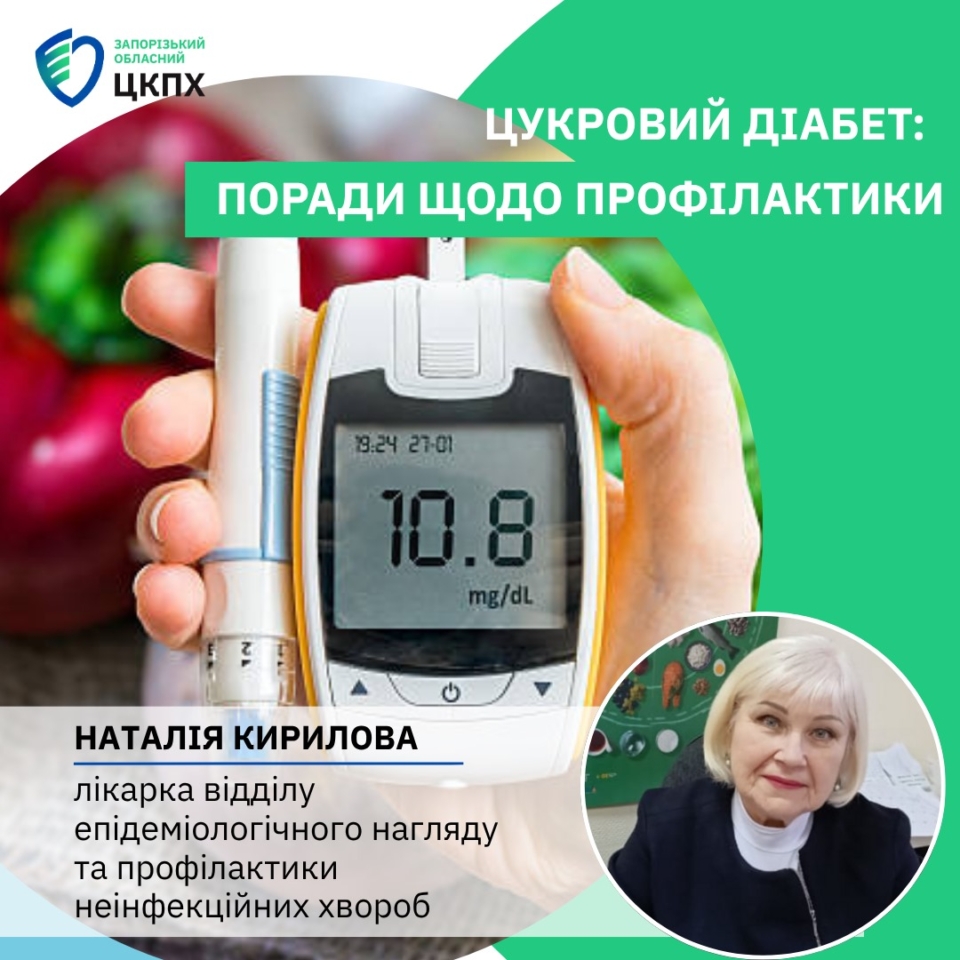 Продовжуємо тему цукрового діабету (ЦД), серйозного захворювання, яке, на жаль, стосується мільйонів людей по всьому світу. У попередньому дописі ми говорили про типи та симптоми діабету https://surli.cc/ueqrkq. Лікарка відділу епідеміологічного нагляду та профілактики неінфекційних хвороб Наталія Кирилова звертає увагу, вчасне діагностування та профілактика зменшують ризик розвитку діабету. У наступному матеріалі лікарка надає важливі поради з профілактики ЦД: