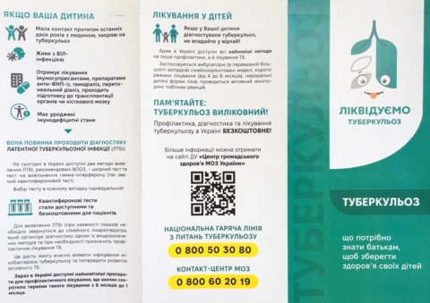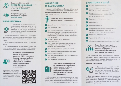 «Туберкульоз. Що потрібно знати батькам, щоб зберегти здоров’я своїх дітей», – до уваги корисна інформація про ТБ у буклеті.