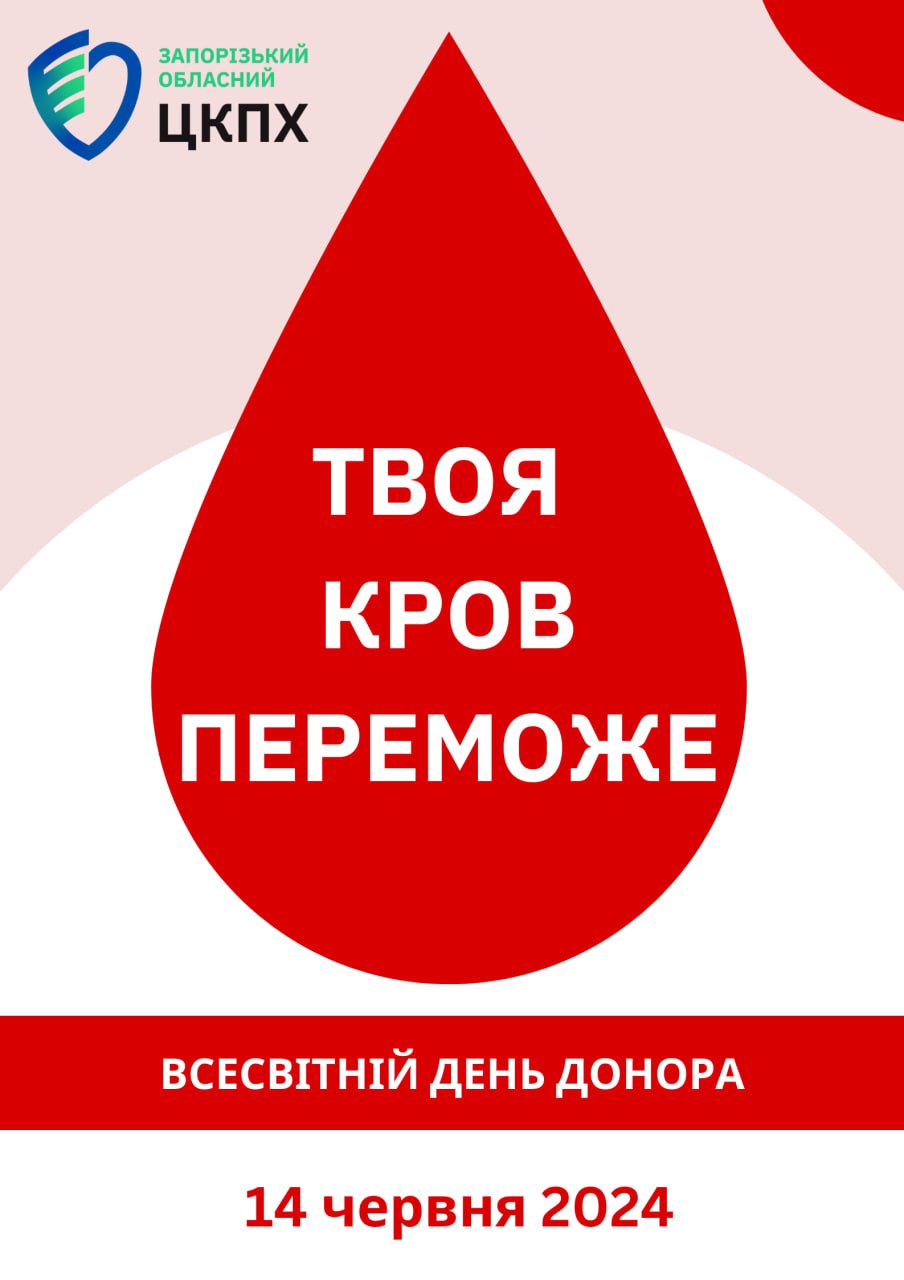 13 червня 2024Запорізький обласний центр контролю та профілактики хвороб доєднується до акції до Міжнародного дня донор крові. Долучайтеся і ви!