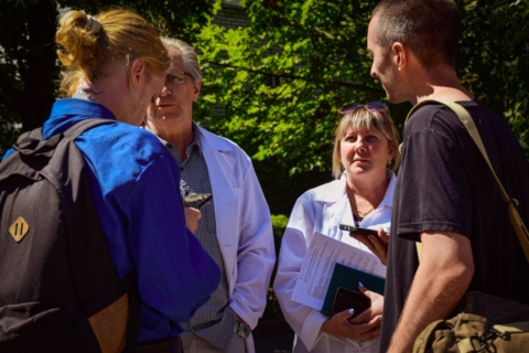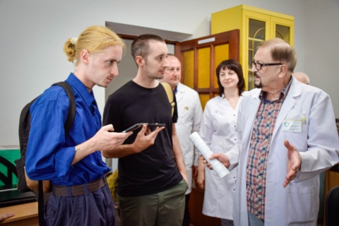 У зустрічі з представником американських ЗМІ взяли участь: генеральний директор Тарас Тищенко, завідувачка лабораторії електромагнітних полів та інших фізичних факторів Олена Нурієва, в.о. начальника відділу моніторингу та реагування на небезпеки Ірина Бакуліна, лікарі Михайло Костенецький та Євген Тулушев.