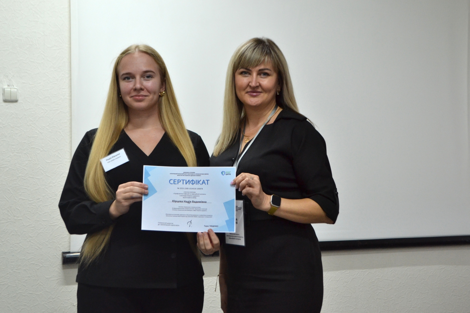 За підсумками теоретичної та практичної частин усі курсанти успішно виконали тестові завдання, урочисто отримали сертифікати учасників.