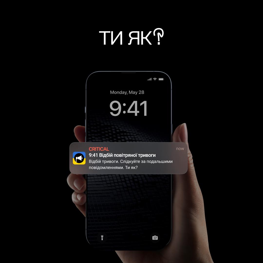 11 червня 2024Відсьогодні, разом з push-повідомленням про відбій повітряної тривоги користувачам приходитиме питання «Ти як?».