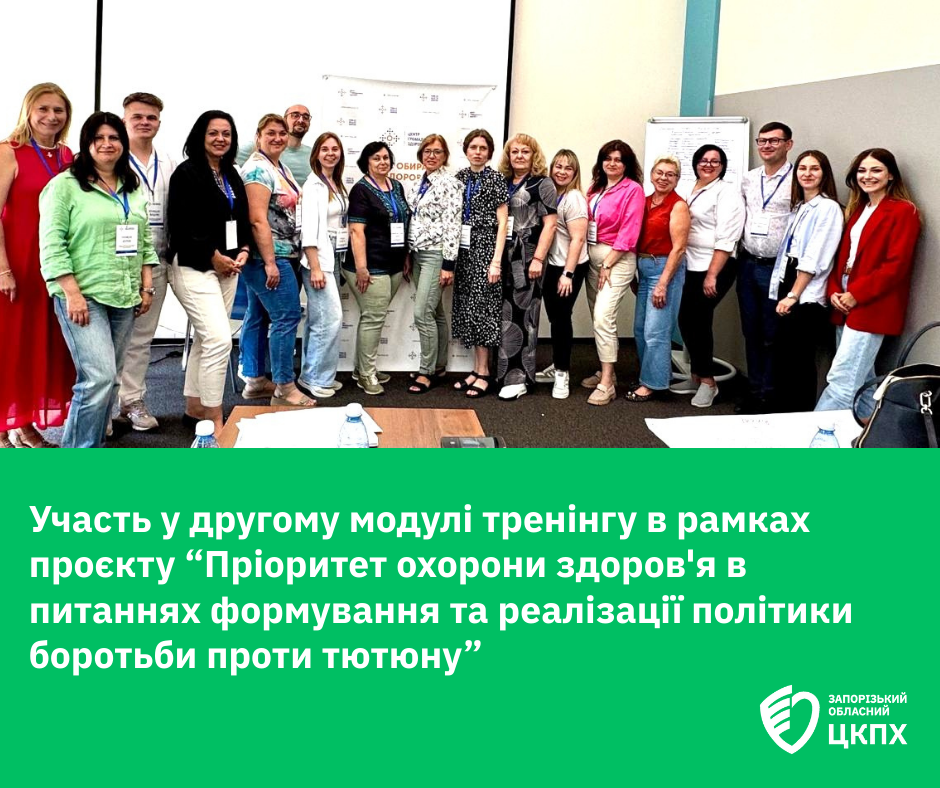 У рамках реалізації проєкту «Пріоритет охорони здоров’я в питаннях формування та реалізації політики боротьби проти тютюну» 28-29 серпня в м. Київ відбувся другий модуль, з трьох запланованих навчальних тренінгів для тренерів щодо консультування по відмові від куріння. Організатор заходу Центр громадського здоров’я України