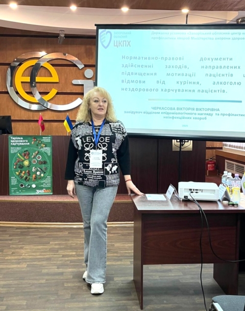 Спікерки навчального заходу фахівчині відділу епідеміологічного нагляду та профілактики неінфекційних захворювань: