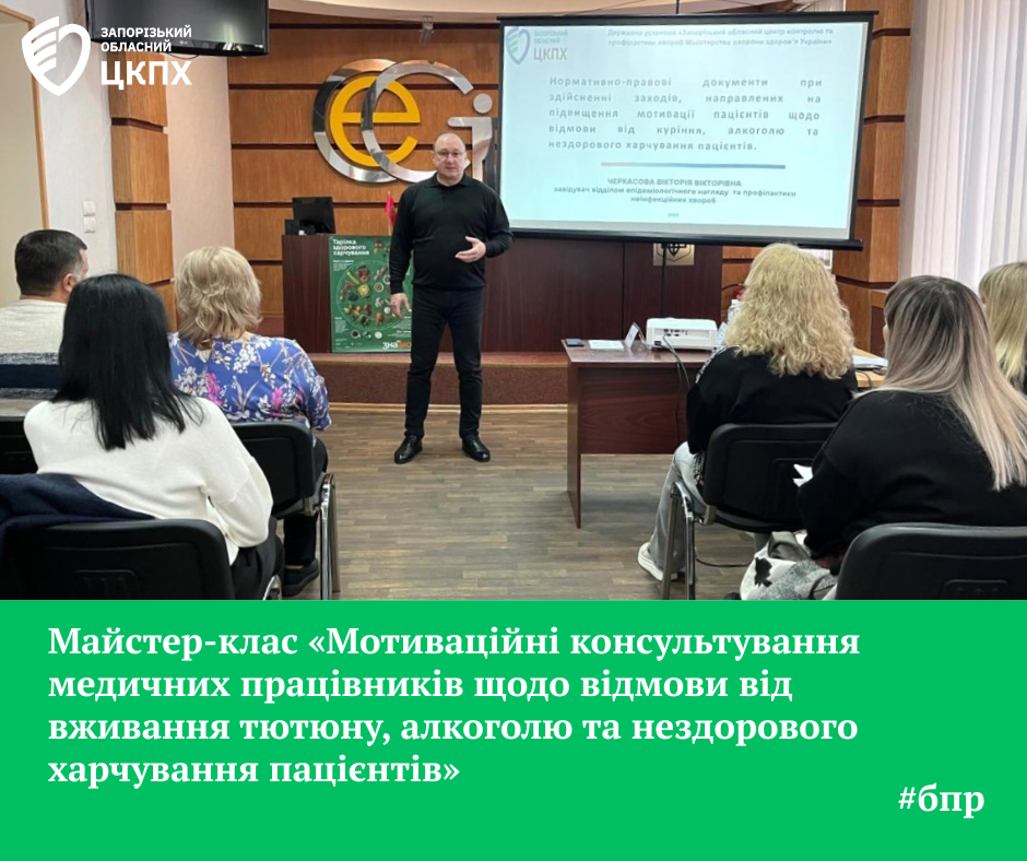 24 жовтня в рамках безперервного професійного розвитку (БПР) для працівників медичної галузі відбувся майстер-клас «Мотиваційні консультування медичних працівників щодо відмови від вживання тютюну, алкоголю та нездорового харчування пацієнтів»