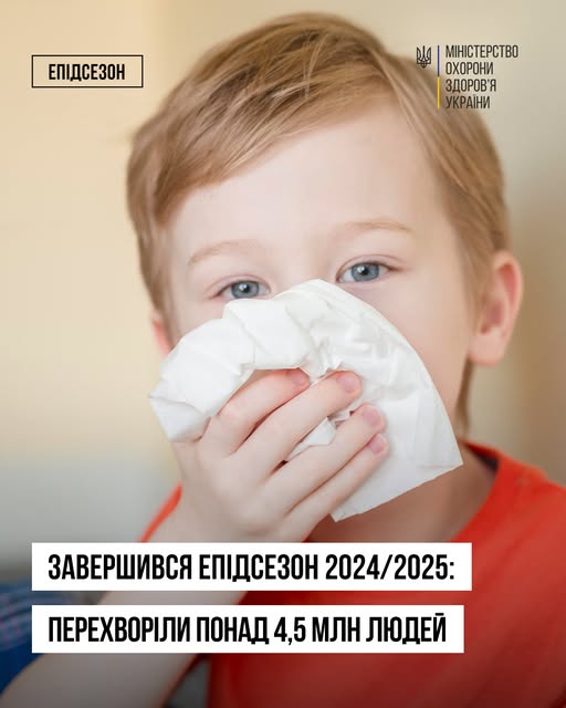 В Україні завершився епідсезон 2024/2025: загалом перехворіло понад 4,5 мільйона людей – МОЗ