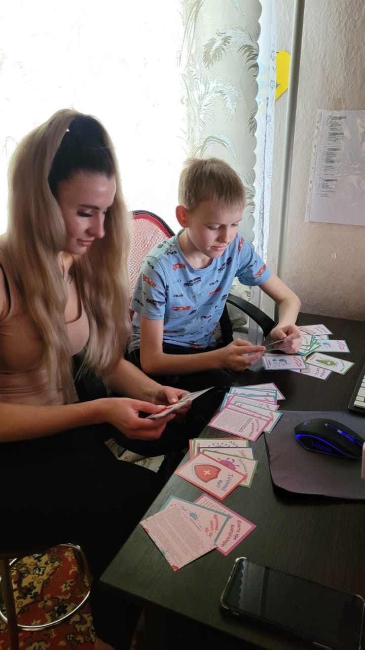 На світлинах зображені фахівці Запорізького ОЦКПХ разом зі своїми дітьми, які грають у гру “Захисники здоров’я”.