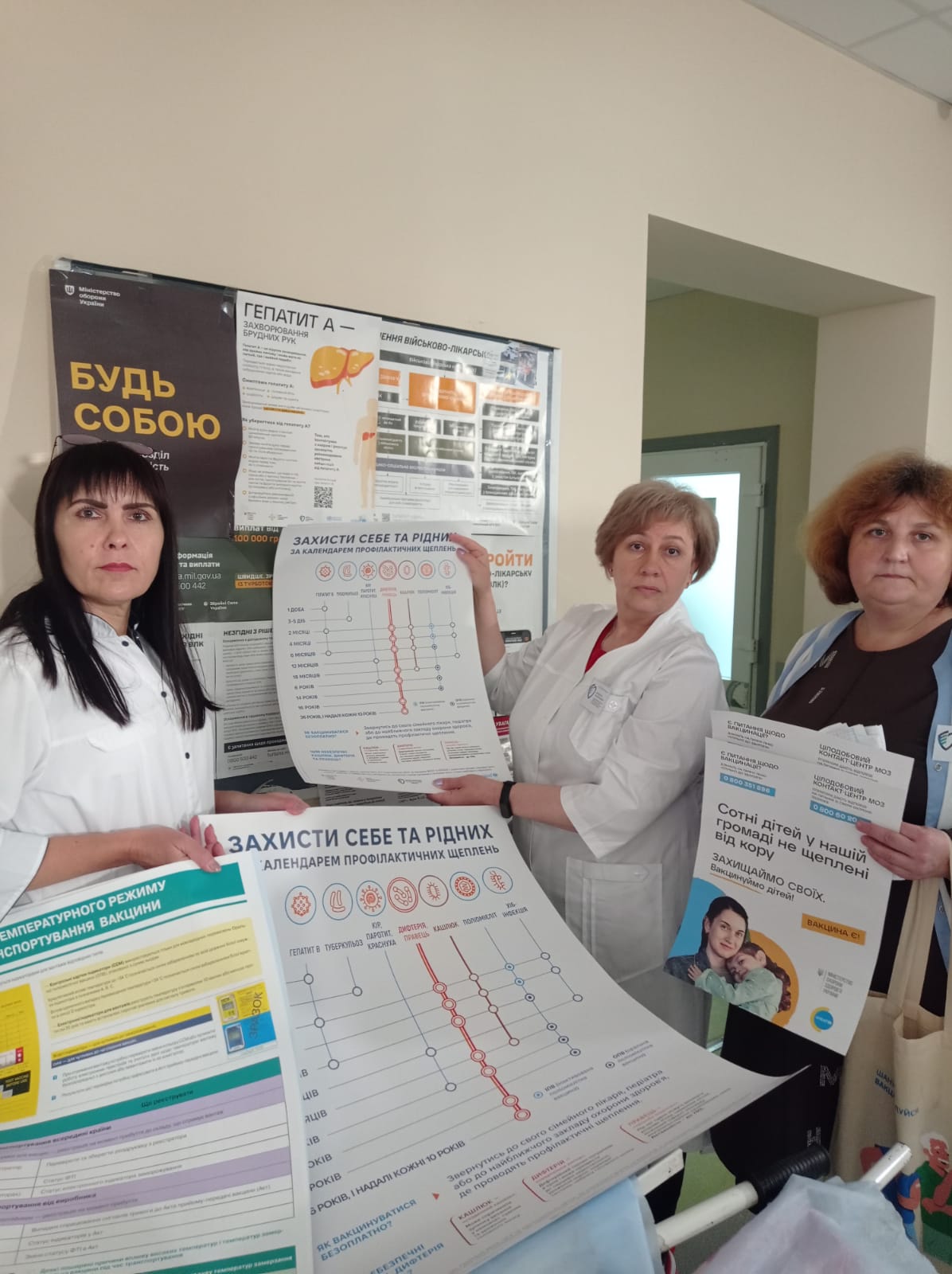 Під час заходу медичним закладам передано друковані інформаційні матеріали, в тому числі плакати “Захисти себе та рідних. Календар профілактичних щеплень”.