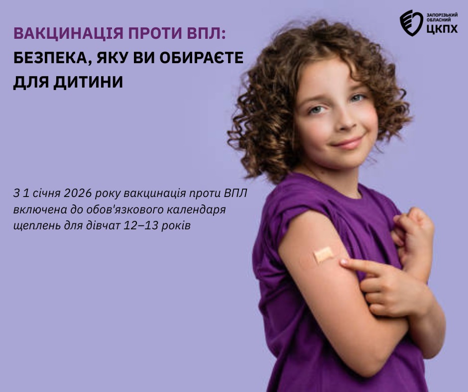 Нагадуємо: з 1 січня 2026 року Національний календар профілактичних щеплень зазнав змін. Щеплення від ВПЛ коштом держави зможуть отримати дівчата віком від 12 років до 13 років, одноразово, 9-валентною вакциною.