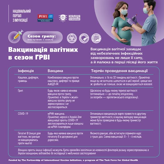 Детальніше про вакцинацію вагітних під час епідсезону ГРВІ читайте за посиланням