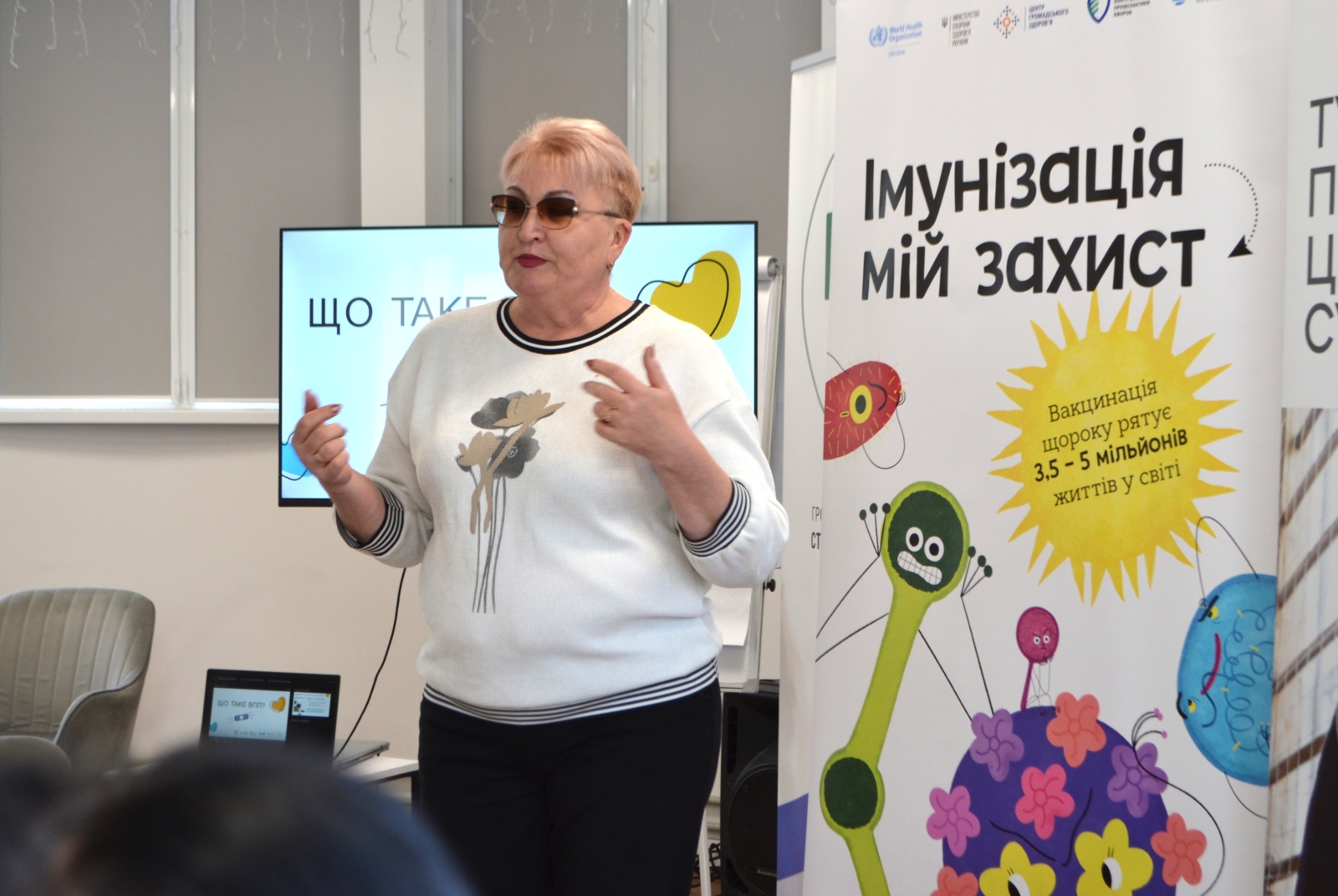 Завідувачка відділу імунопрофілактики Марина Колєрова та лікар-епідеміолог Денис Івченко представили присутнім змістовну презентацію. Фахівці розкрили важливі питання – наскільки вірус папіломи людини (ВПЛ) є поширеним, хто має ризики заразитися на ВПЛ, про шляхи передачі, можливі наслідки, і головне, мова йшла про профілактику. Спікери акцентували увагу на вакцінації проти ВПЛ – найдієвішого захисту від вірусу.
