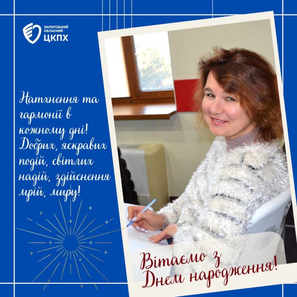 10 листопада керівництво та колектив Запорізького обласного центру контролю та профілактики хвороб МОЗ України щиро вітає з Днем народження фахівчиню з профорієнтації тренінгового центру Фоменко Яніну Анатоліївну.