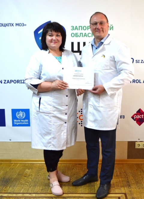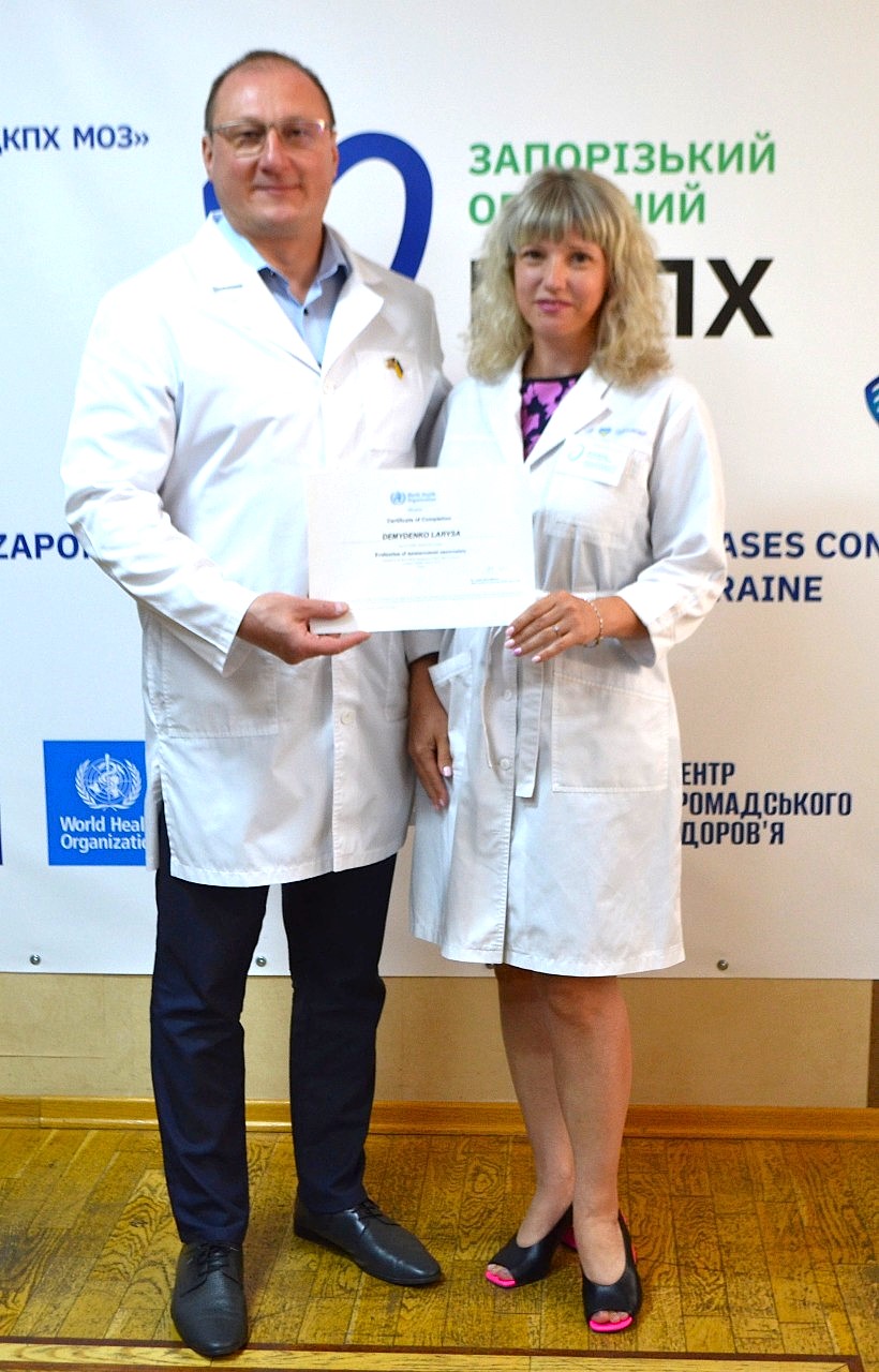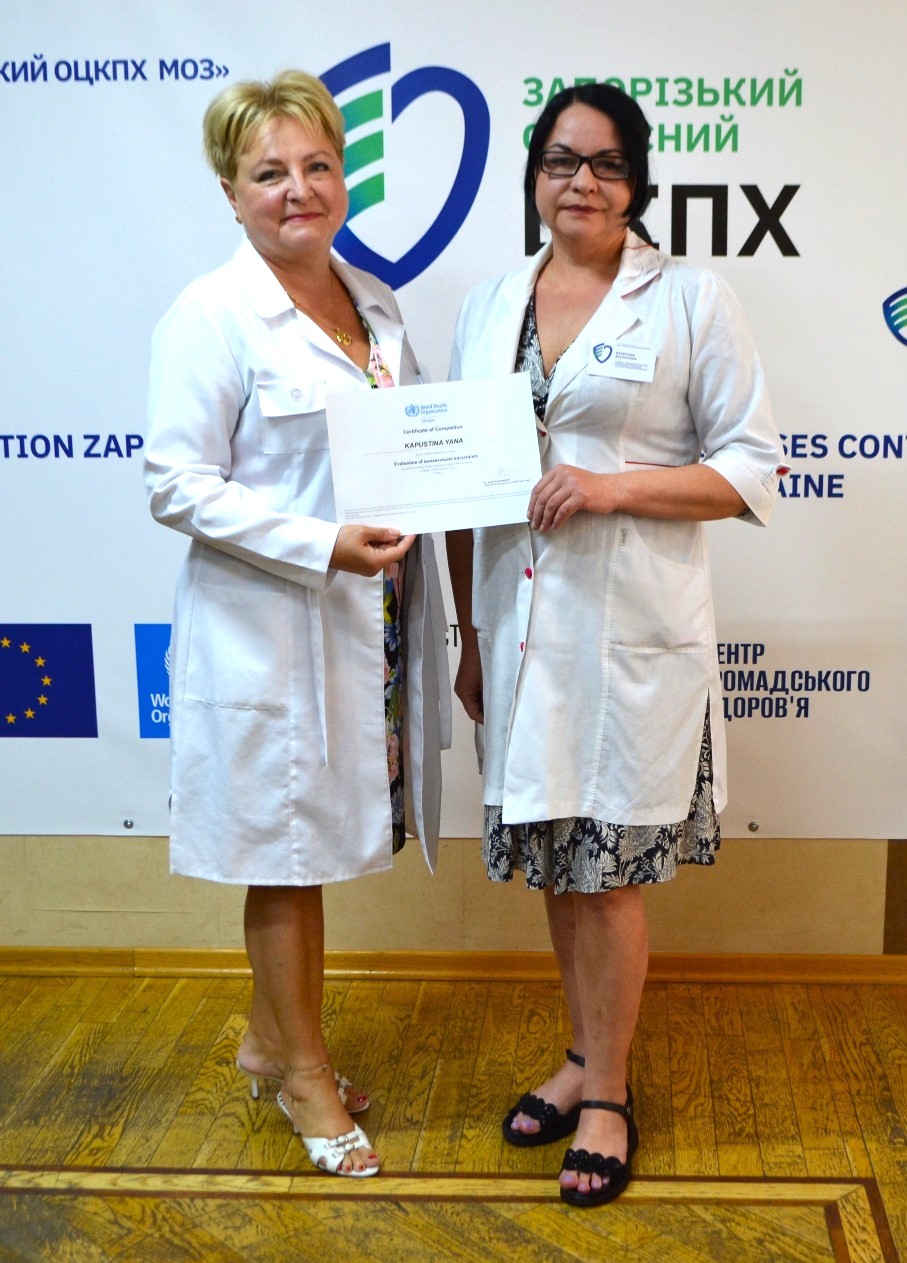 Шість фахівців санітарно-гігієнічних лабораторій ДУ «Запорізький ОЦКПХ МОЗ» та відокремленого підрозділу Запорізький відділ, які брали участь у тренінгу та успішно пройшли тестування і отримали сертифікати.