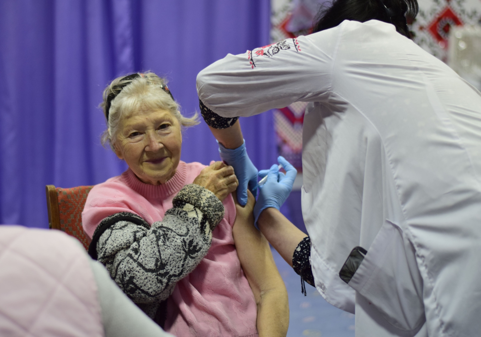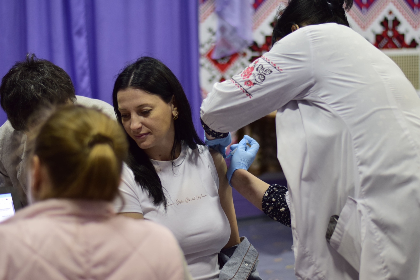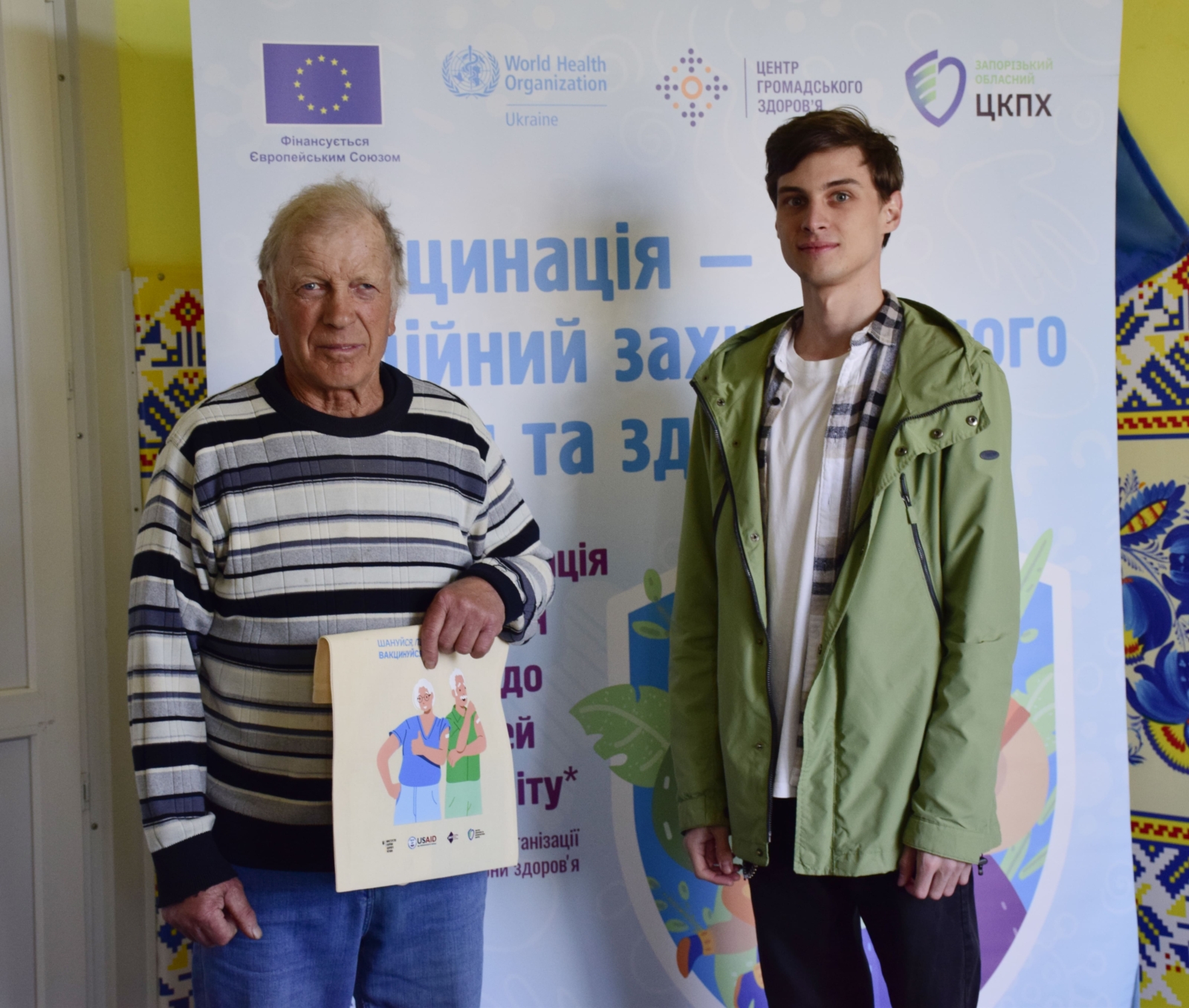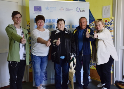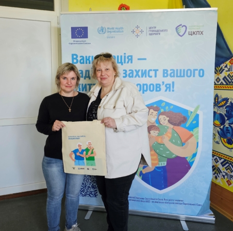 Кожний вакцинований отримав сумку-шопер “Вакцинуйся!” та тематичну друковану продукцію “Вакцинація під час війни”, розмальовки “Вакциновані – захищені”, “Національний календар щеплень”.