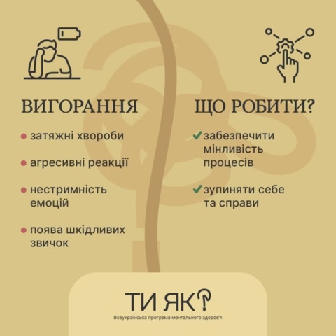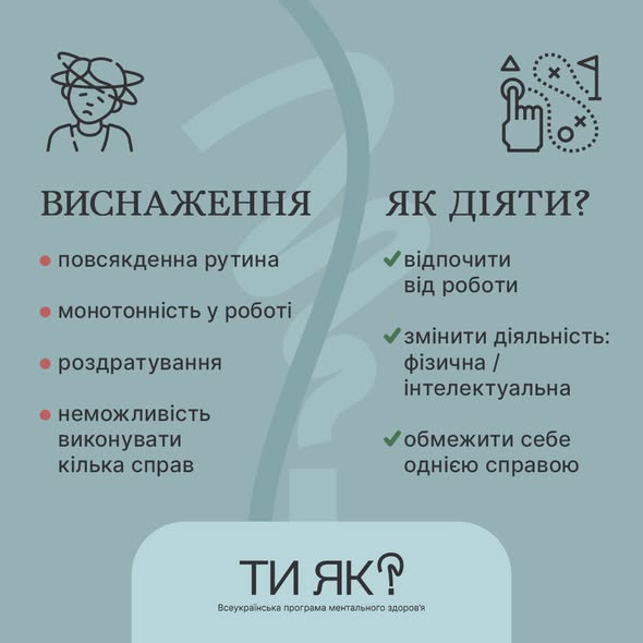 «Чому це так важливо? Тому що при виснаженні у людини не вистачає енергії. Вона береться за все одразу, але нічого не може закінчити. Як діяти? Обмежувати себе та робити одну справу, а не 10, навіть якщо ви так звикли. Саме в цьому стані відмова, обмеження, певні психологічні кордони відбудовуватимуть ментальну цілісність. Бо інакше може дійти до того, що виснажена людина психологічно буде не здатна робити навіть такі прості речі, як почистити зуби та умитися», – пояснює Сергій Міщук.