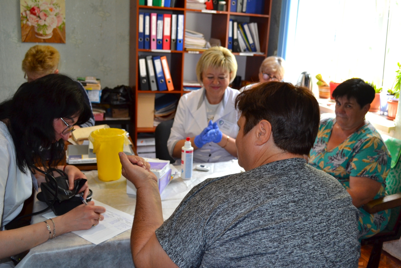 Фахівці відділу епідеміологічного нагляду (спостереження) неінфекційних хвороб ДУ санітарні фельдшери Ірина Кирпа та Людмила Немикіна провели скринінг цукру в крові та вимірювання артеріального тиску 54 жителям селища.