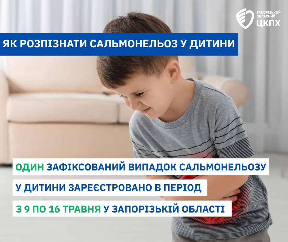 В період з 9 по 16 травня у Запорізькій області зареєстрований один випадок сальмонельозу- захворіла дитина ймовірно після вживання «домашнього» сиру та сметани, які були придбані на стихійному ринку.