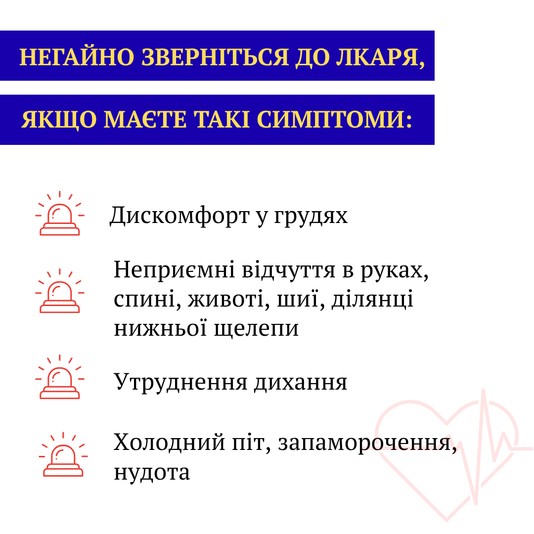 Дбайте про здоров’я вашого серця і регулярно проходьте обстеження лікаря, аби запобігти серцевого нападу та вчасно отримати належне лікування.