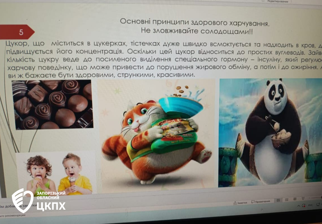 З метою навчити дітей харчуватися правильно та раціонально фахівці відділу епідеміологічного нагляду та профілактики неінфекційних хвороб регулярно проводять пізнавальні тематичні уроки для школярів. 29 січня такий онлайн урок для учнів-початківців Запорізької гімназії № 62 провела лікарка з гігієни дітей та підлітків Наталія Кирилова. Тема зустрічі – «Здорове харчування школярів».
