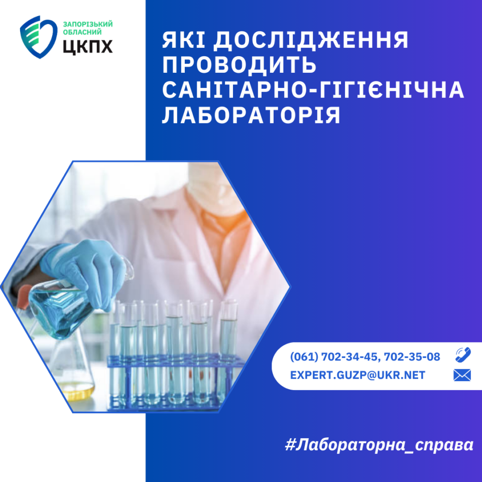 Важливу ланку в Запорізький обласний центр контролю та профілактики хвороб займає санітарно-гігієнічна лабораторія відділу досліджень фізичних та хімічних факторів. Лабораторія проводить санітарно-гігієнічні лабораторні дослідження (випробування) у сфері санітарного та епідемічного благополуччя населення.