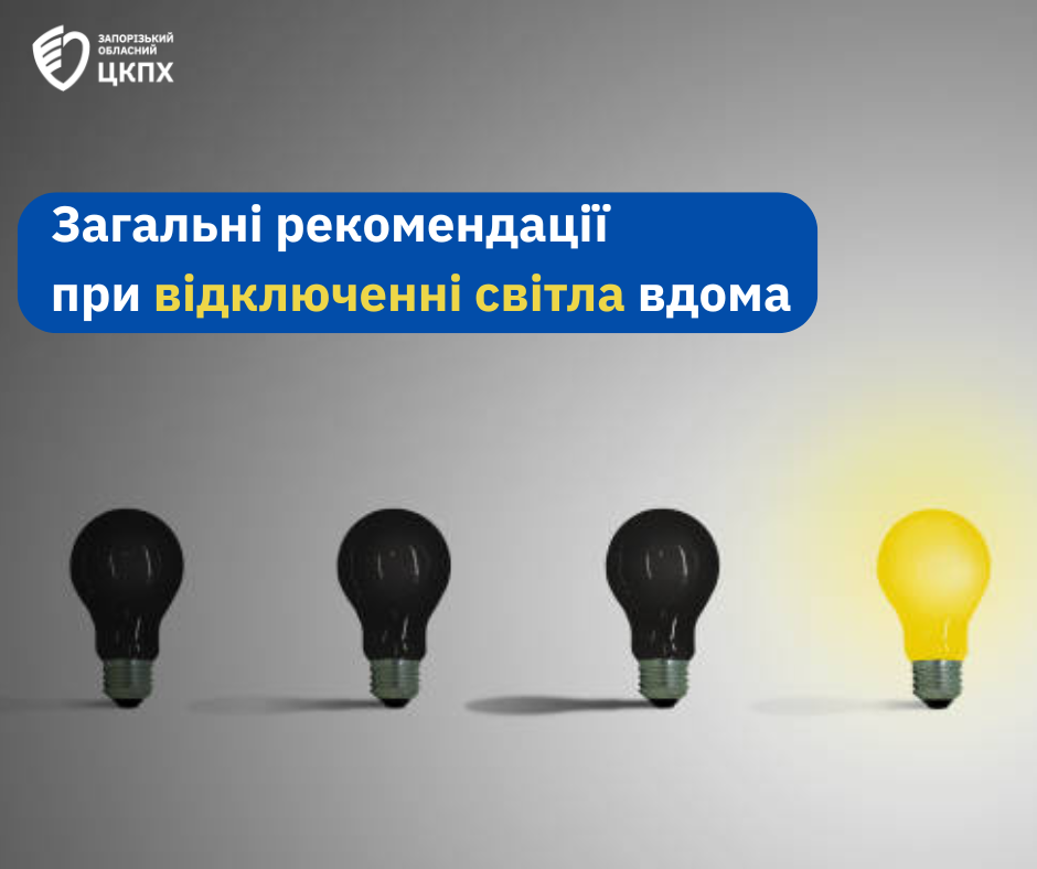 Запорізький обласний центр контролю та профілактики хвороб нагадує загальні рекомендації при відключенні світла вдома: