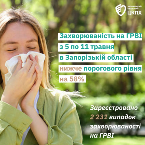 За останні п’ять тижнів (7 квітня -11 травня 2025) захворюваність на ГРВІ знаходиться в межах 248,0 – 276,0 на 100 тисяч, щотижня реєструється від 2100 – 2300 випадків.