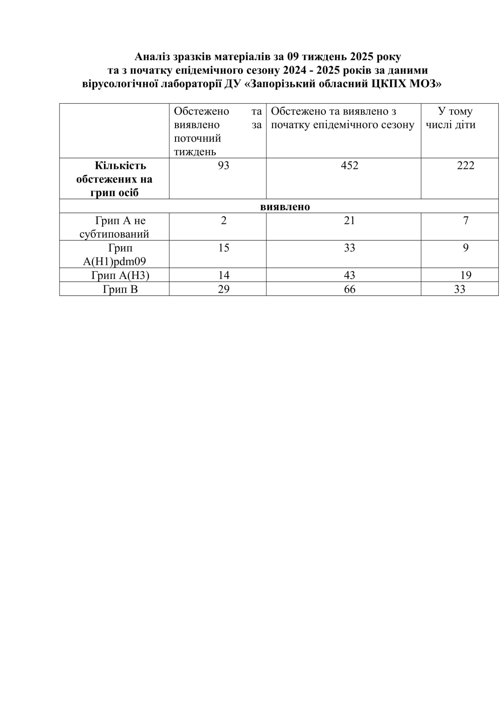 Захворюваність на ГРВІ за 9 тиждень 2025 року по Запорізькій області
