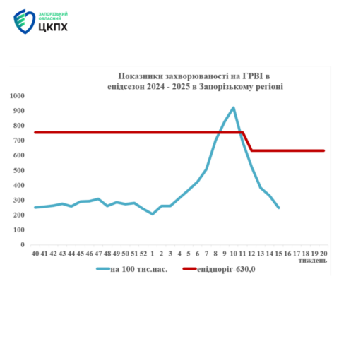 Протягом останніх п’яти тижнів спостерігається зниження захворюваності на ГРВІ, з 10-го тижня темп зниження склав 65%. На 15-му тижні 2025 року інтенсивний показник захворюваності на ГРВІ складає 248,0 на 100 тис. населення, що нижче порогового рівня на 60%.
