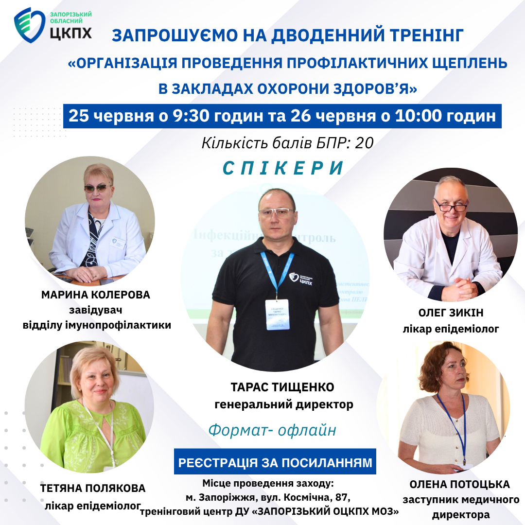 Запрошуємо 25-26 червня 2025 року на Тренінг «Організація проведення профілактичних щеплень в закладах охорони здоров’я»