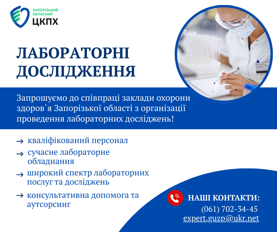 Запрошуємо до співпраці заклади охорони здоров`я Запорізької області з організації проведення лабораторних досліджень