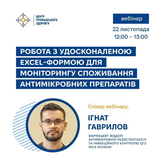 Запрошуємо на вебінар «Робота з удосконаленою Excel-формою для моніторингу споживання антимікробних препаратів»