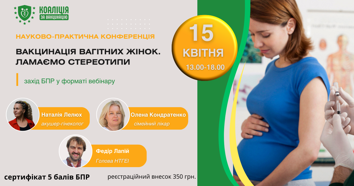 Науково-практична конференція «Вакцинація вагітних жінок. Ламаємо стереотипи» відбудеться 15 квітня 2025 року з 13.00 до 18.00 (онлайн участь у реальному часі). Захід БПР (5 балів).