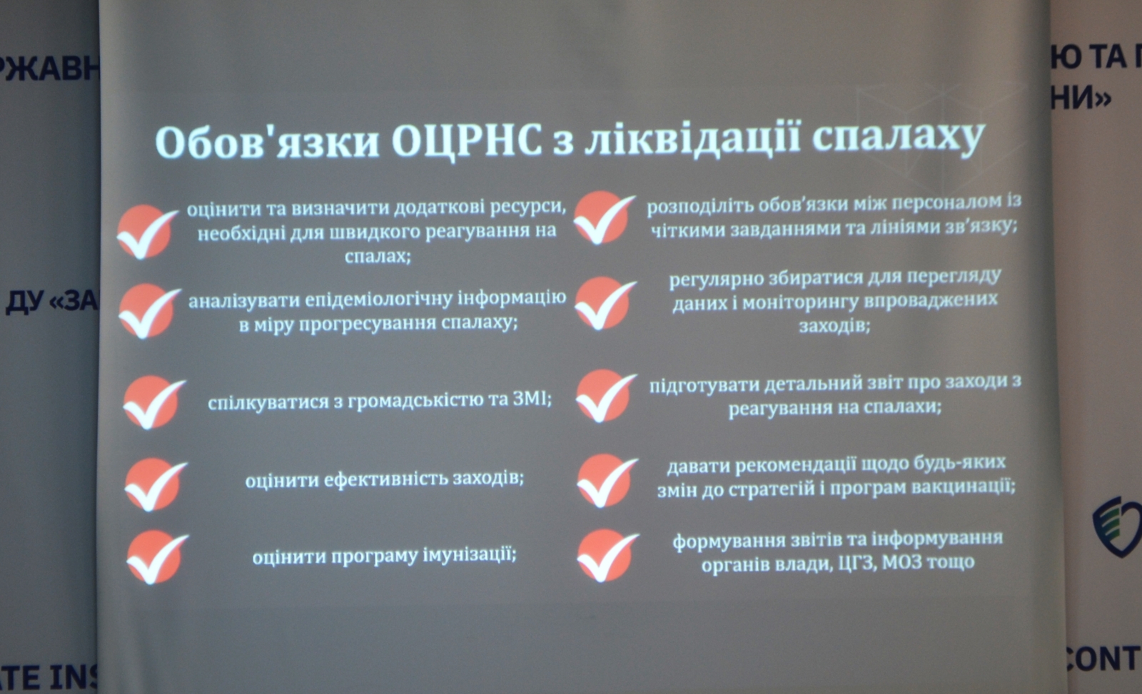 З доповідями на засіданні виступили заступник генерального директора з питань профілактики неінфекційних хвороб Дмитро Макаров та завідувач епідеміологічного нагляду та профілактики інфекційних хвороб Світлана Черненко.