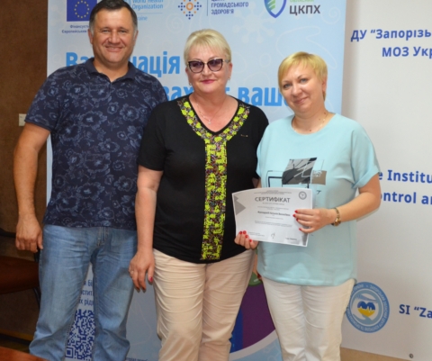 Під час вручення сертифікатів за підсумками заходу, заступник генерального директора з біологічних факторів Запорізького обласного ЦКПХ, Олександр Мащак подякував всім учасникам за наполегливість та прагнення до професійного саморозвитку, а тренерам за високу компетентність, змістовні презентації та ефективну організацію практичних вправ.