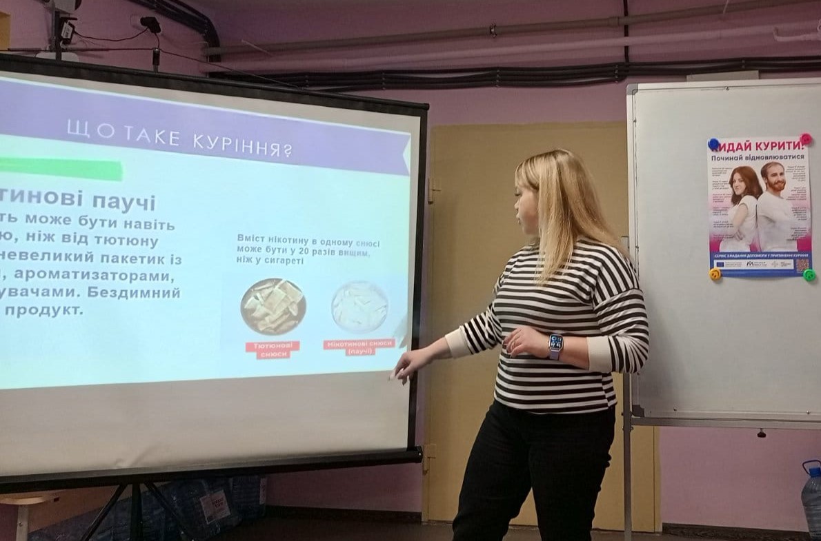 Цього тижня плідно спілкувалися зі школярами на тему щодо загрози здоров’ю від куріння. Катерина Острогляд, лікарка з загальної гігієни відділу епідеміологічного нагляду та профілактики неінфекційних хвороб, регіональна координаторка з контролю над тютюном, зустрічалася з підлітками запорізьких шкіл – гімназії «Основа» та в партнерстві з Міжнародна Антинаркотична Асоціація м. Запоріжжя з учнями школи «Хабад Любавич».